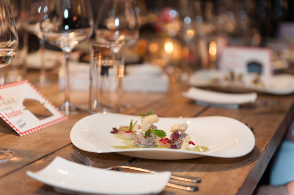 Het verschil met onze andere kookworkshops is dat de chefs meer laten zien. Je bent minder zelf aan het koken en kijkt en luistert meer naar wat de chefs laten zien…en ondertussen mag je natuurlijk ook gerechtjes proeven. Daarna ga je aan tafel en geniet je van het eten en de bijbehorende drankjes.